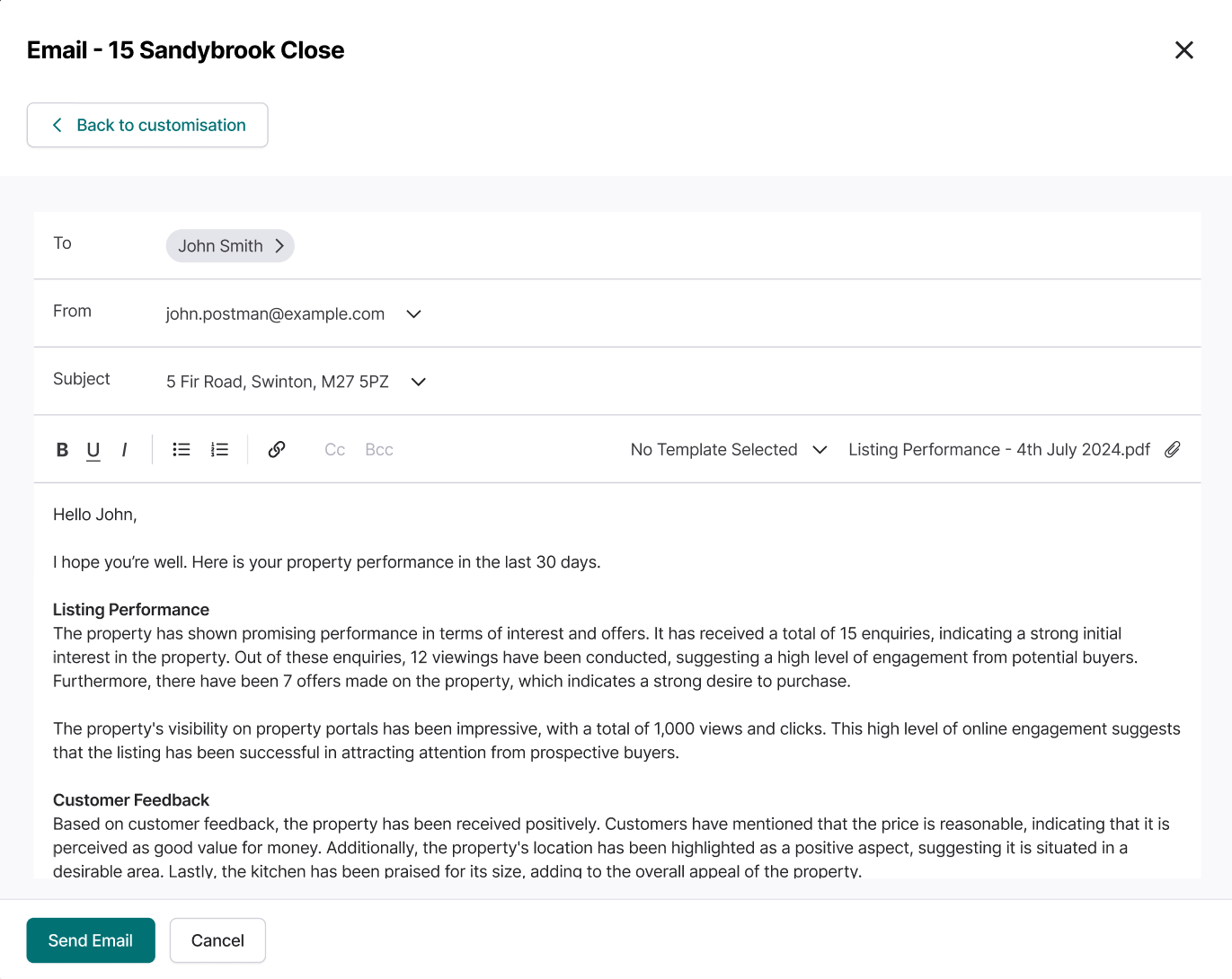 Sharing the report with vendors couldn’t be easier, either, with the ability to add personalised copy and send in just a few clicks.